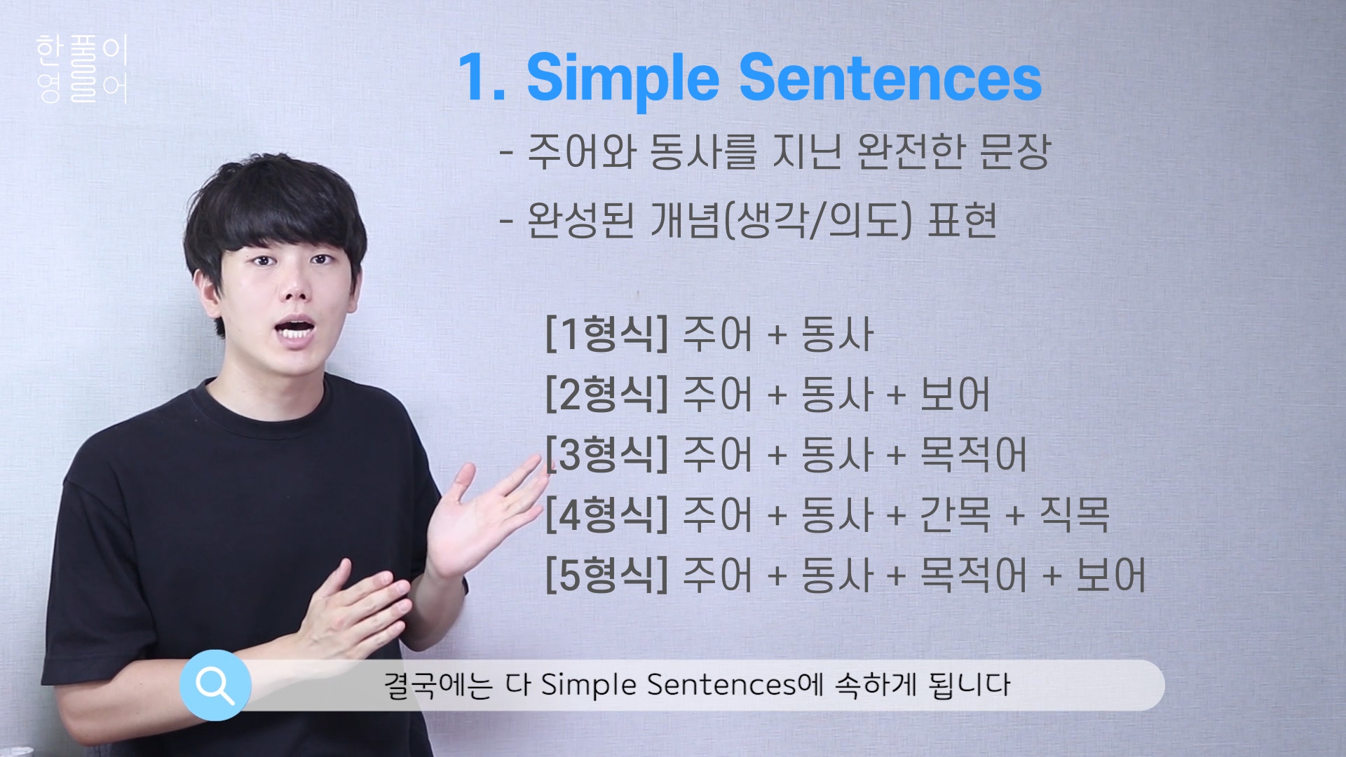 그런데 우리가 배우는 문장의 5가지 형식은 전부 다 1번 하나에 속하게 됩니다.