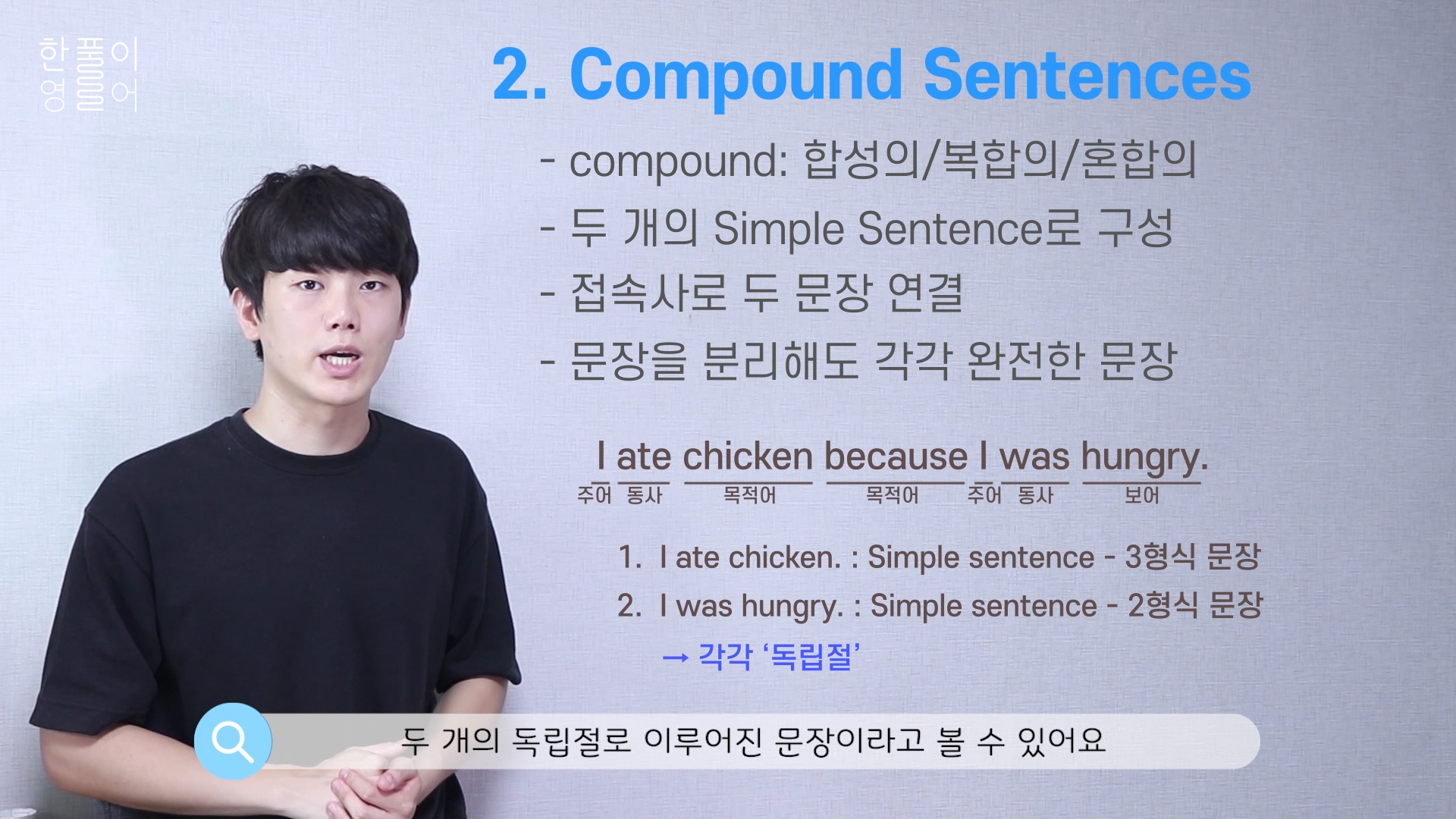 이렇게 simple sentence 두 문장이 이어진 하나의 문장을 보고