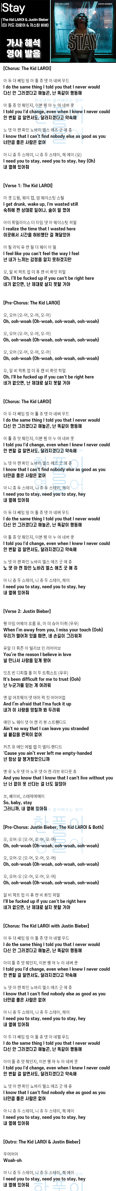 Stay - The Kid LAROI & Justin Bieber (더 키드 라로이 & 저스틴 비버) [가사 해석, 번역 / 영어 한글 발음]