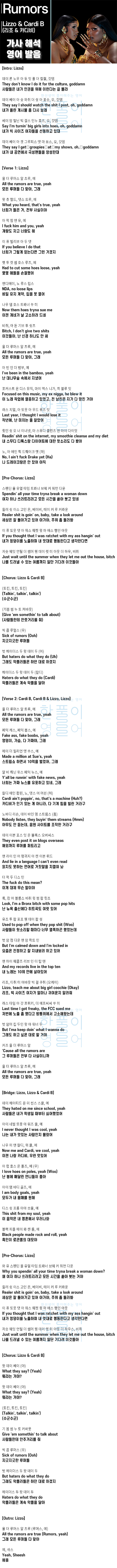 Rumors - Lizzo & Cardi B (리조 & 카디비) [가사 해석, 번역 / 영어 한글 발음]