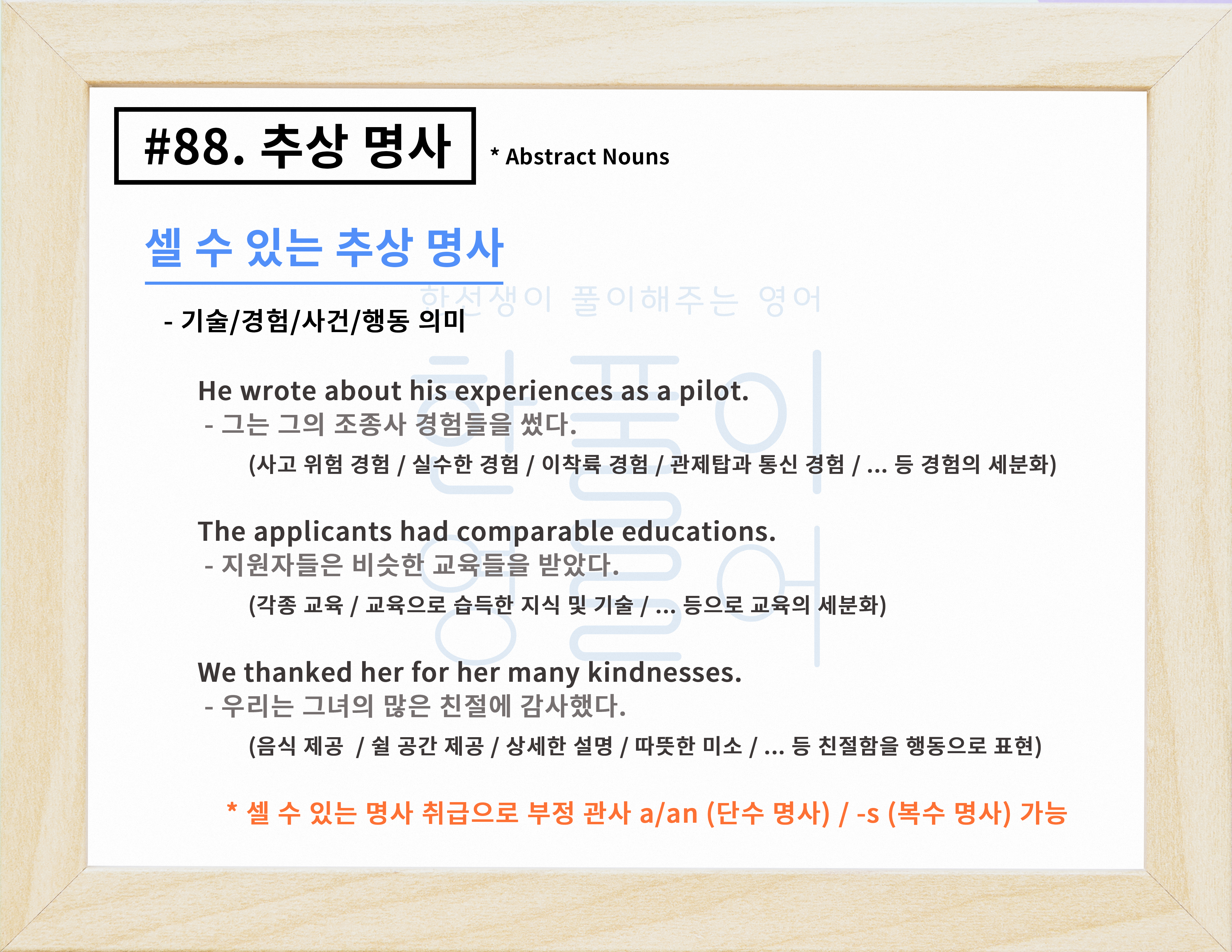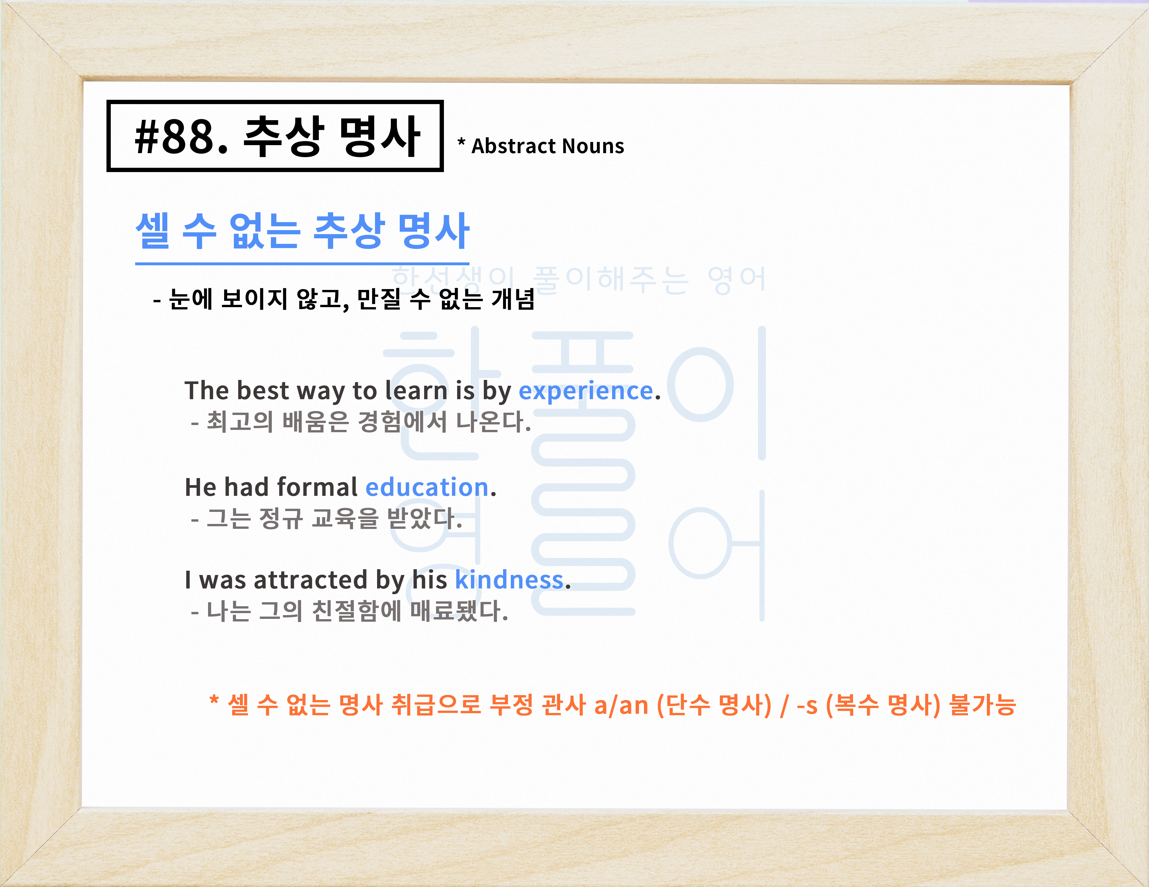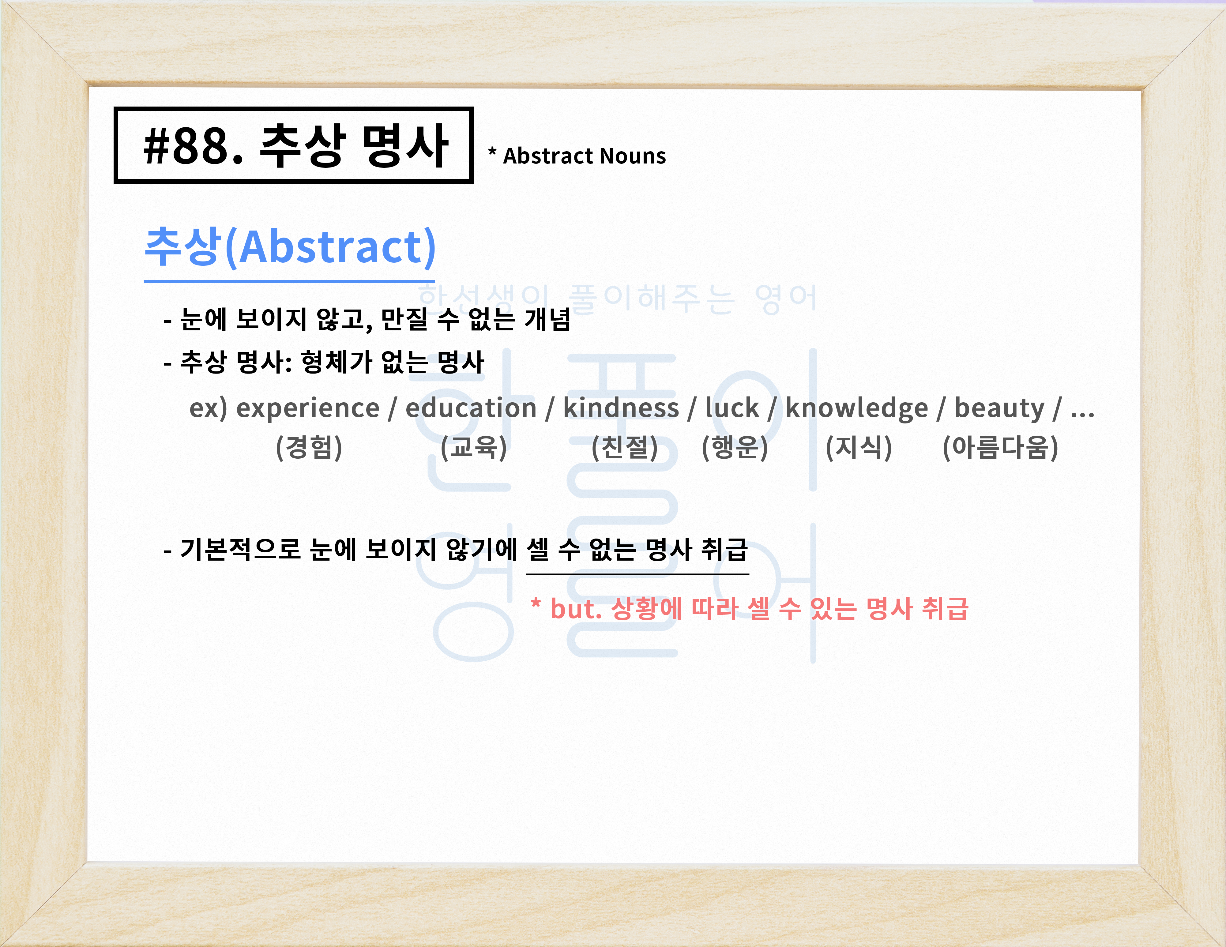 추상 명사 뜻과 종류! 셀 수 있는 명사일까? 없을까? [영어 문법 풀이 #88]