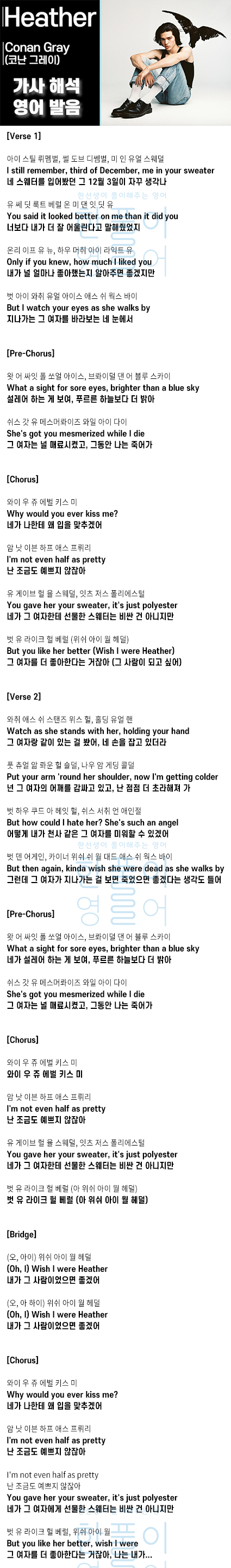 Heather - Conan Gray (코난 그레이) [가사 해석, 번역 / 영어 한글 발음]