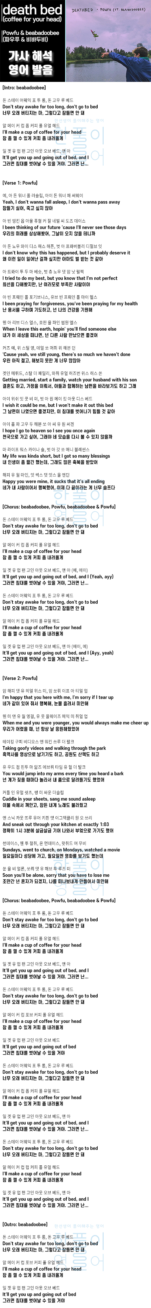 death bed (coffee for your head) - Powfu & beabadoobee (파우푸 & 비바두비) [가사 해석, 번역 / 영어 한글 발음]
