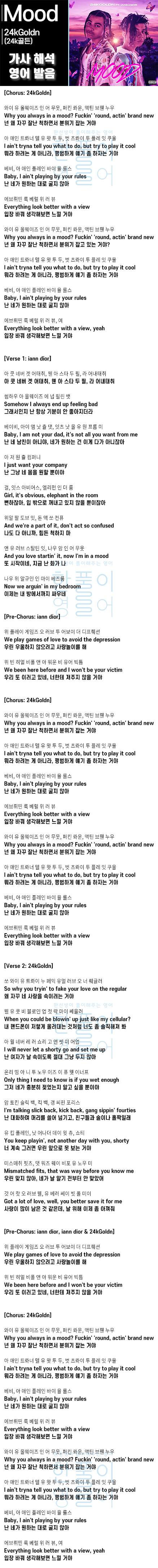 Mood - 24kGoldn (24k골든) [가사 해석, 번역 / 영어 한글 발음]