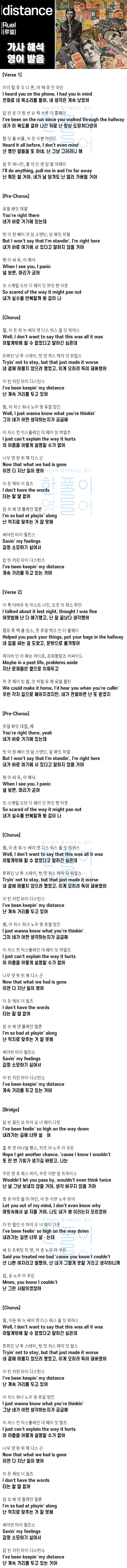 distance - Ruel (루엘) [가사 해석, 번역 / 영어 한글 발음]