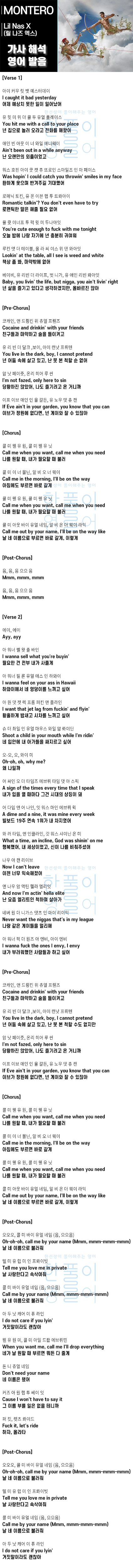 MONTERO (Call Me By Your Name) - Lil Nas X (릴 나즈 엑스) [가사 해석, 번역 / 영어 한글 발음]