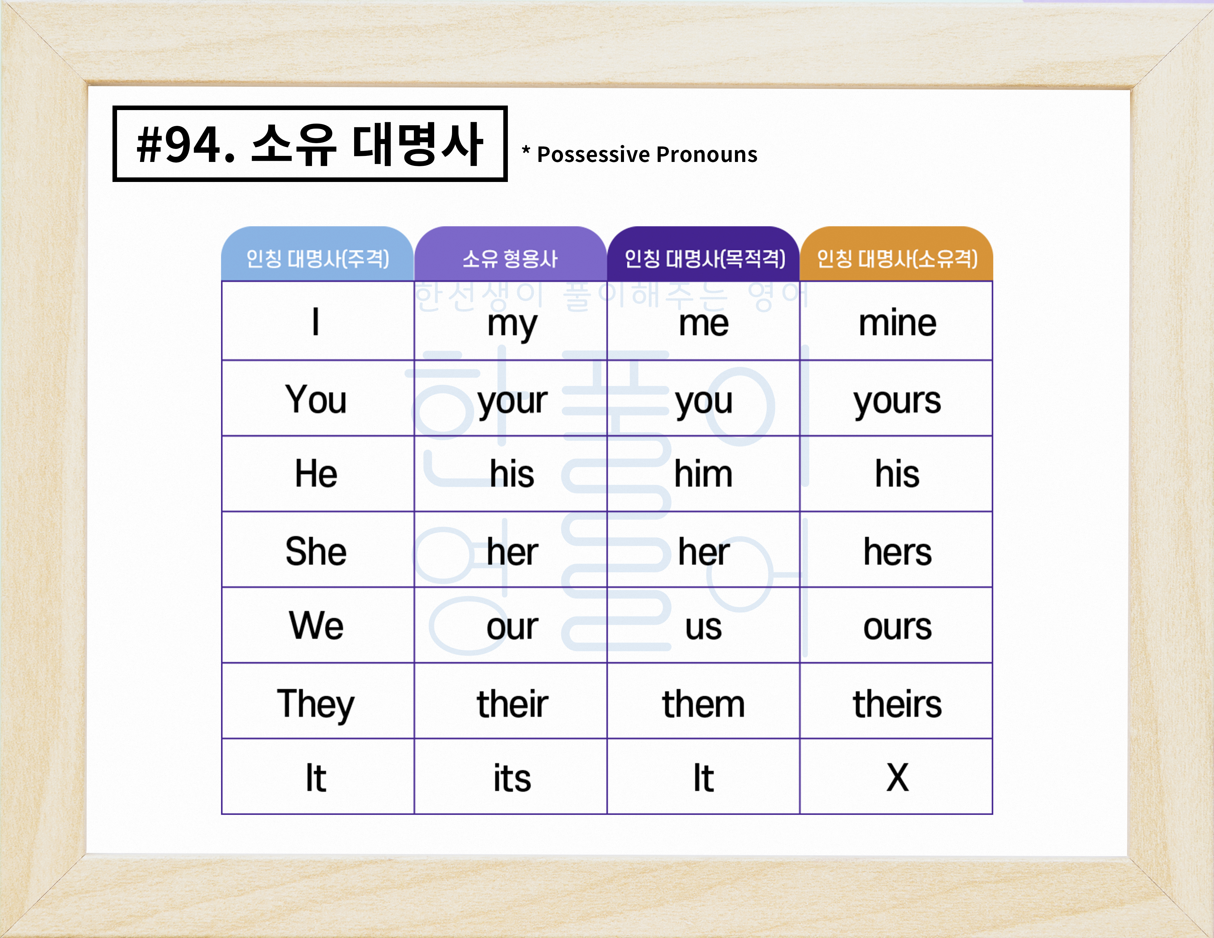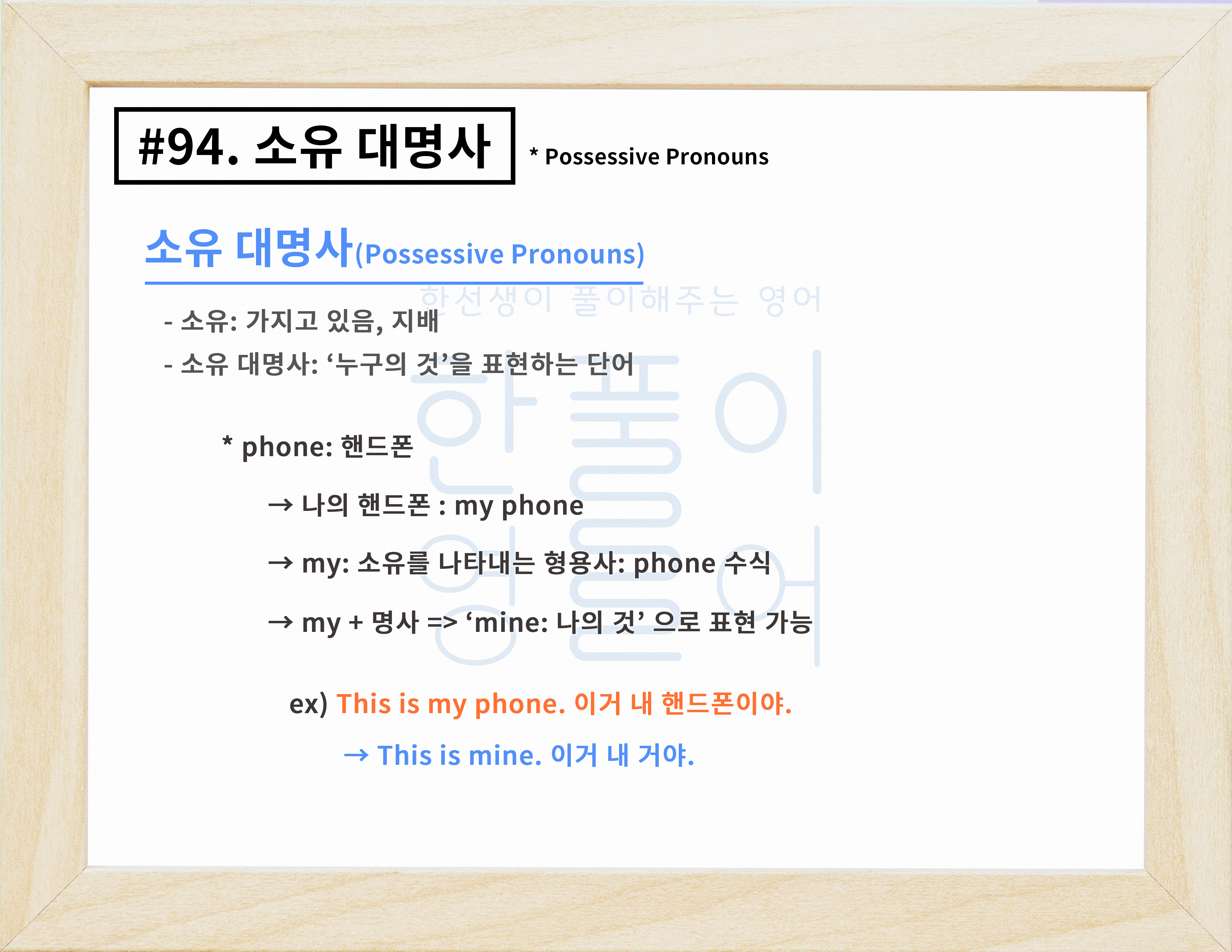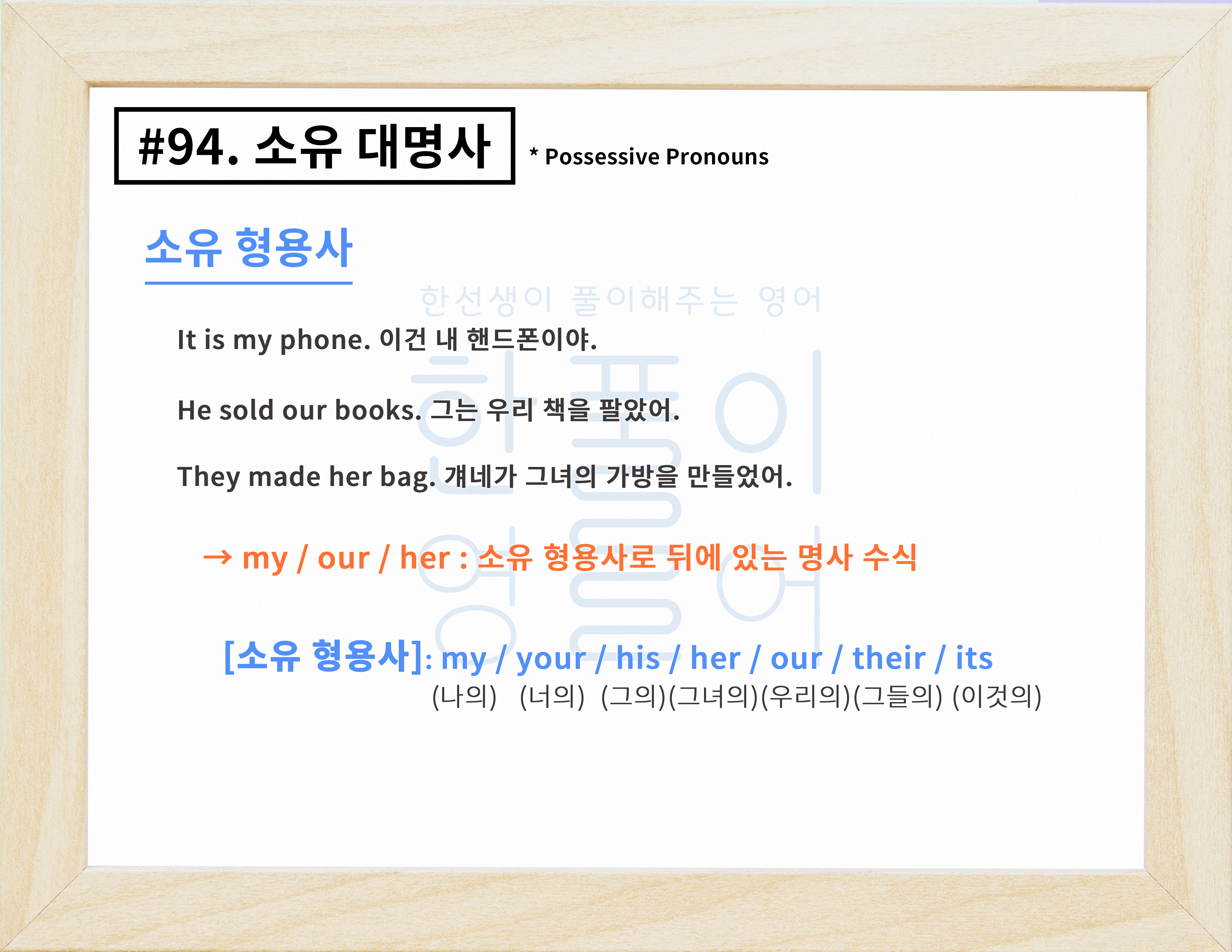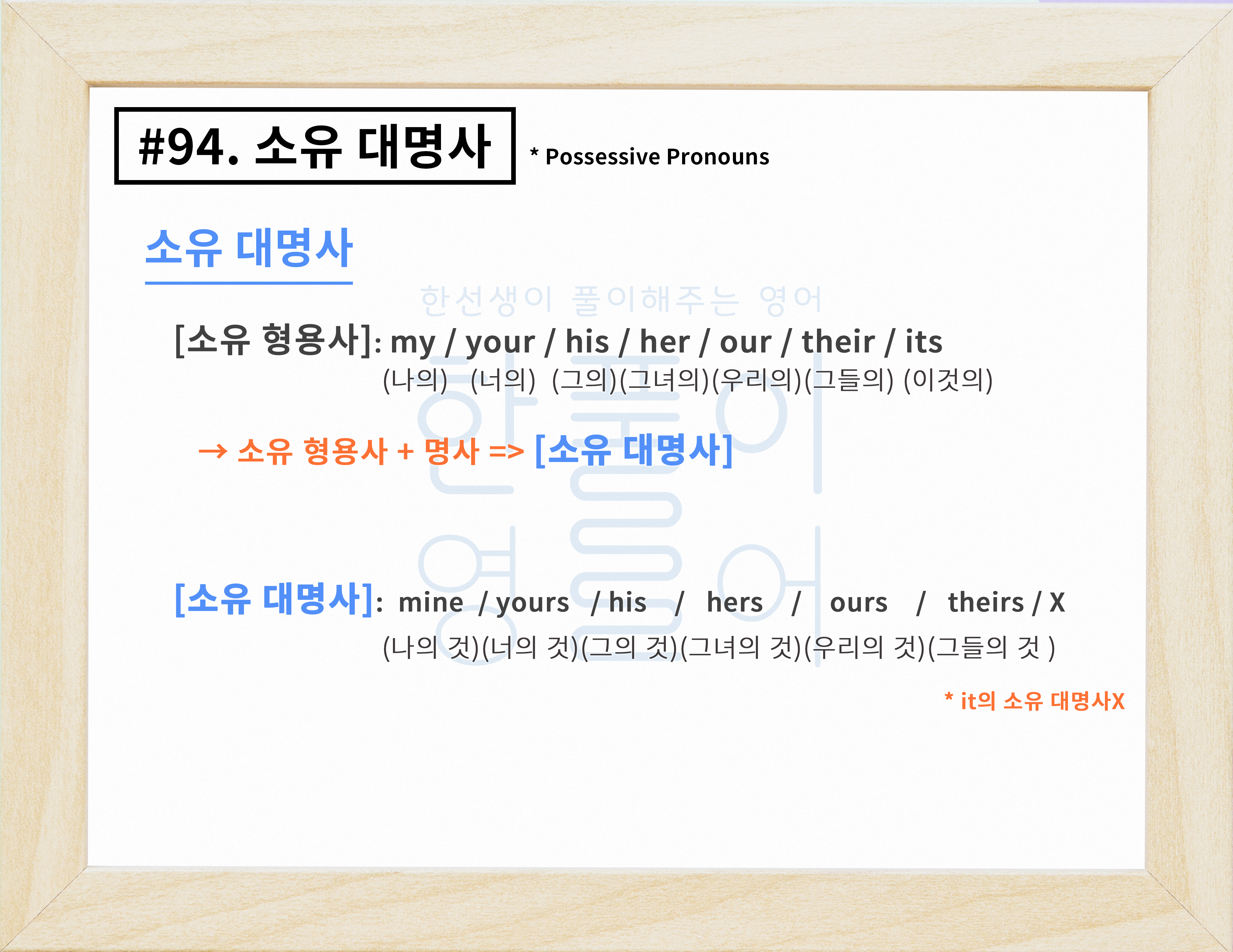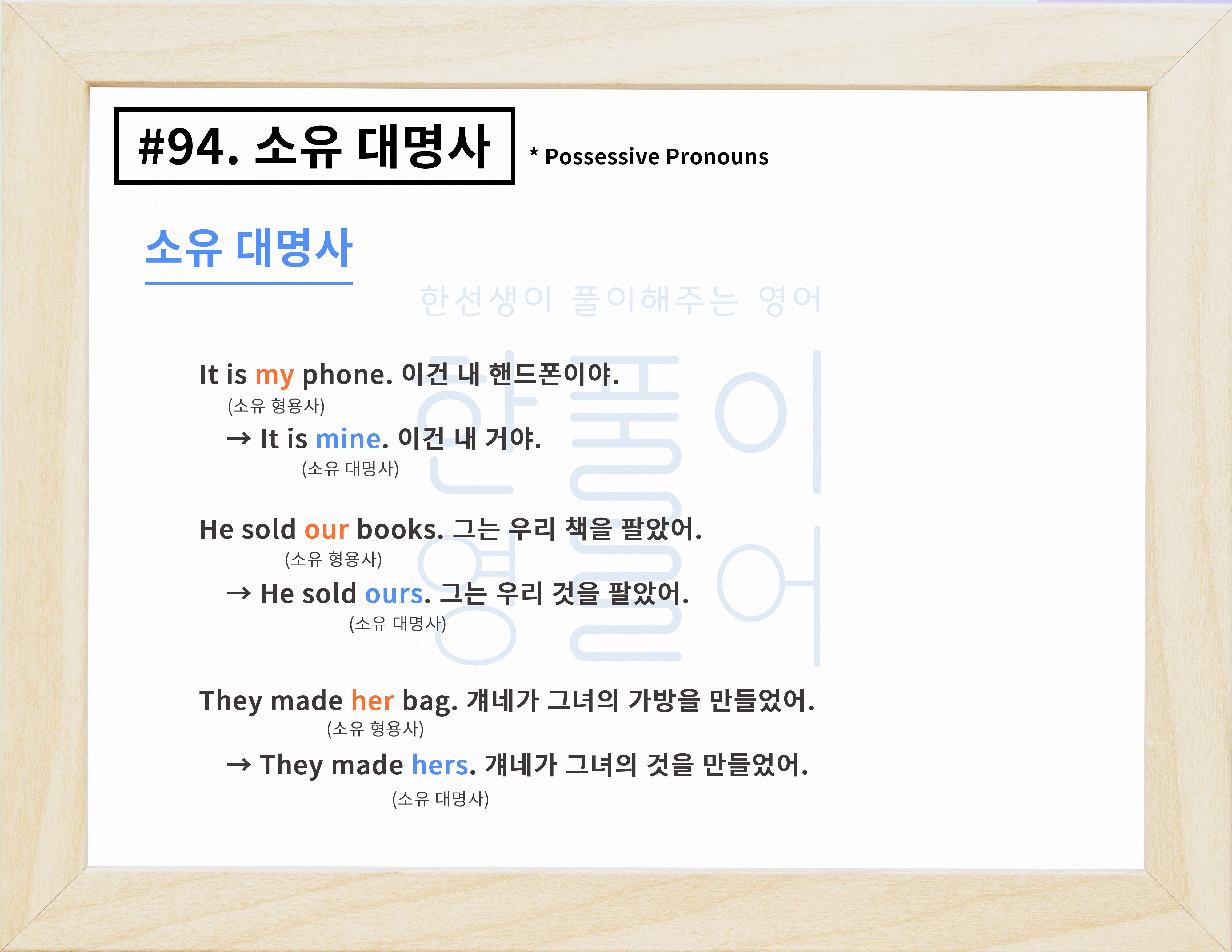 소유 대명사 개념과 종류 알아보기 (표/노래) [영어문법풀이 #94]