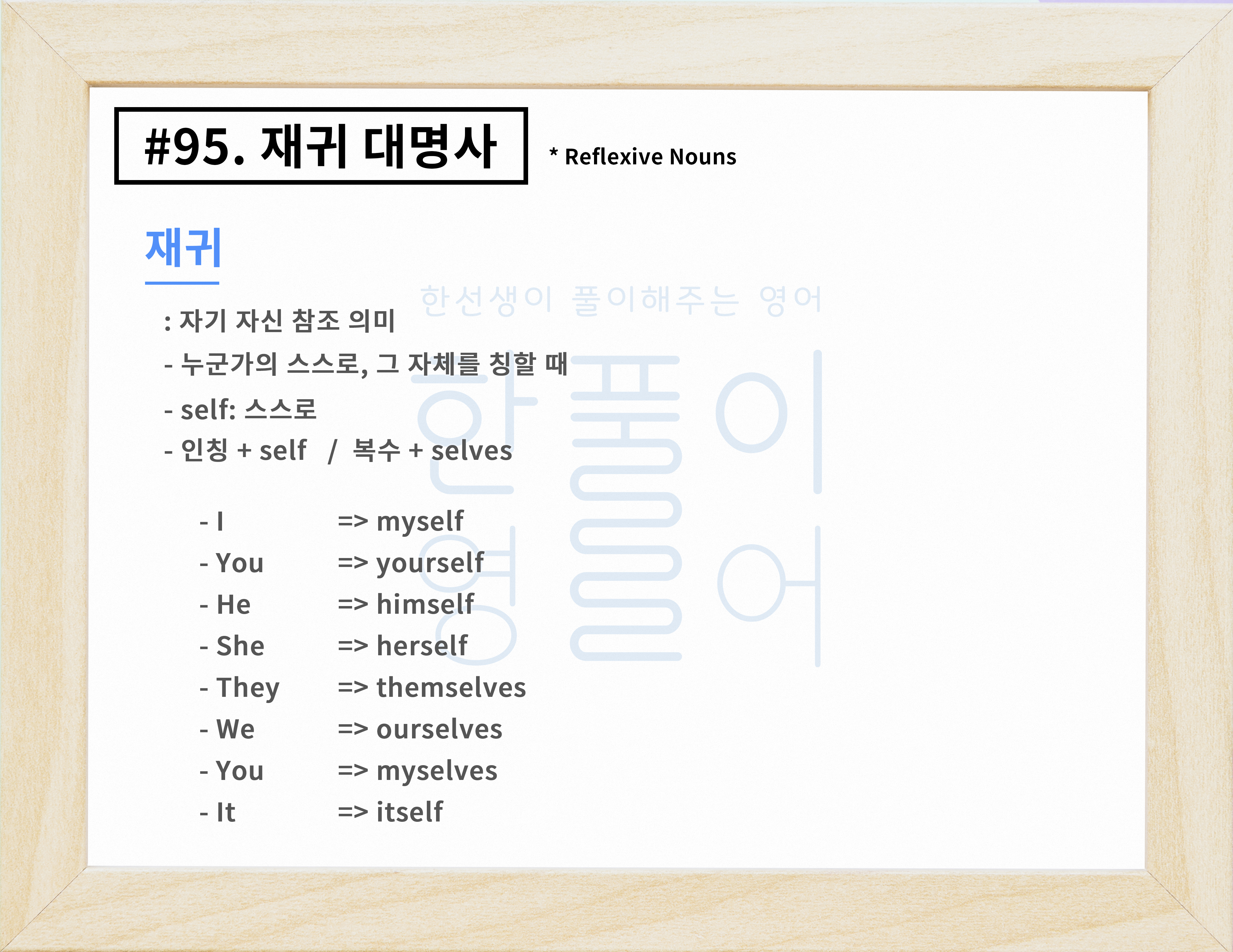 재귀 대명사 & 강의 대명사 뜻과 개념 알아보기 [영어 문법 풀이 #95]