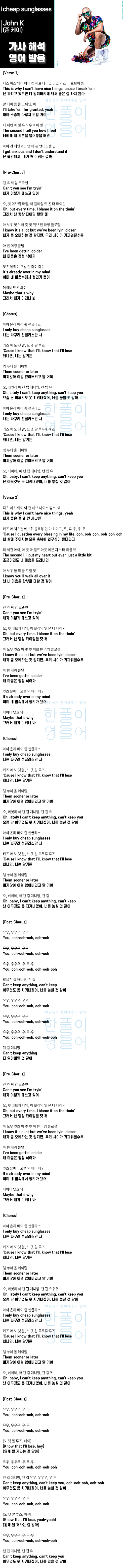 cheap sunglasses - John K (존 케이) [가사 해석 / 번역 / 영어 한글 발음 / ]