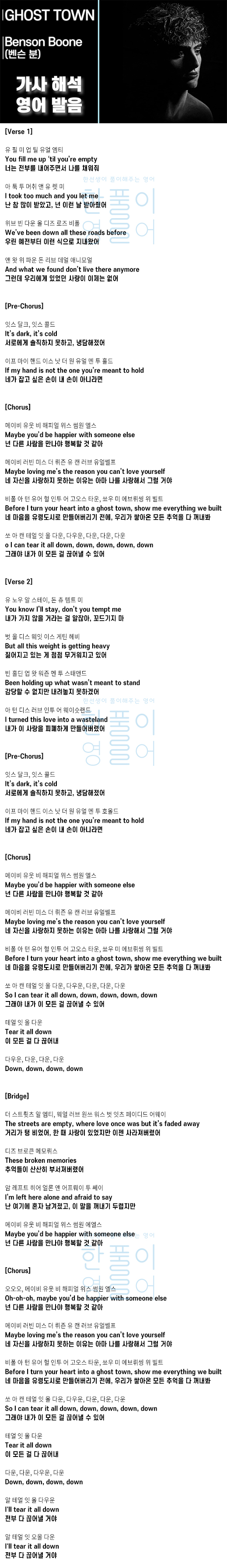 GHOST TOWN - Benson Boone [가사 해석, 번역 / 영어 한글 발음]