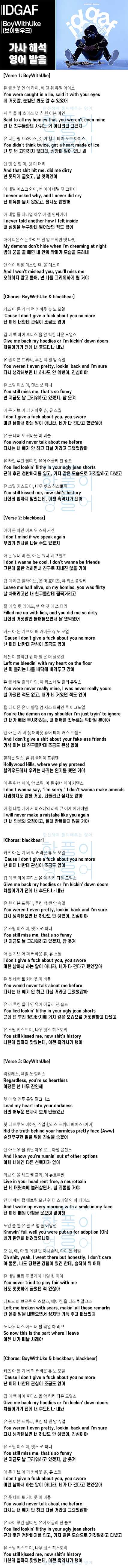 IDGAF - BoyWithUke(보이윗우크) feat. blackbear(블랙베어) [가사 해석, 번역 / 영어 한글 발음]