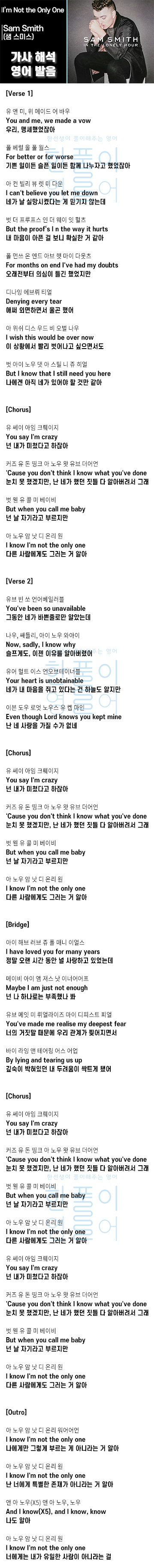 I’m Not the Only One - Sam Smith (샘 스미스) [가사 해석, 번역 / 영어 한글 발음]