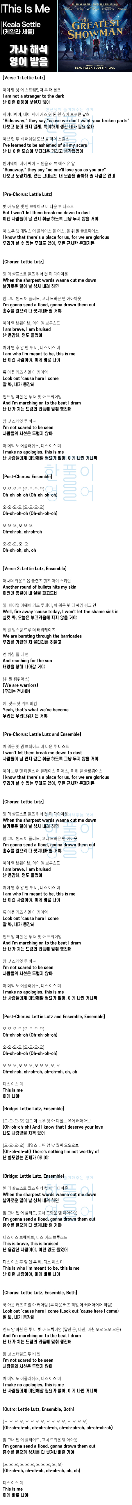 This Is Me (위대한 쇼맨 OST) - Keala Settle(케알라 세틀) [가사 해석, 번역 / 영어 한글 발음]