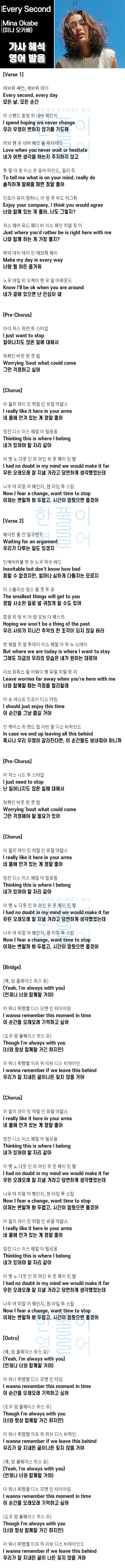 Every Second - Mina Okabe (미나 오카베) [가사 해석, 번역 / 영어 한글 발음]