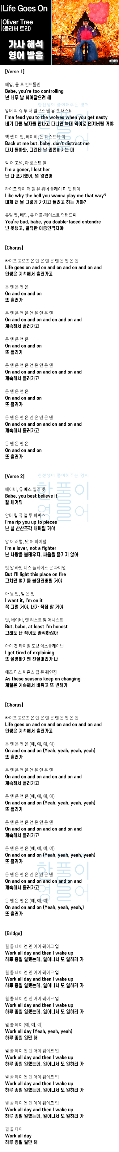 Life Goes On - Oliver Tree (올리버 트리) [가사 해석, 번역 / 영어 한글 발음]