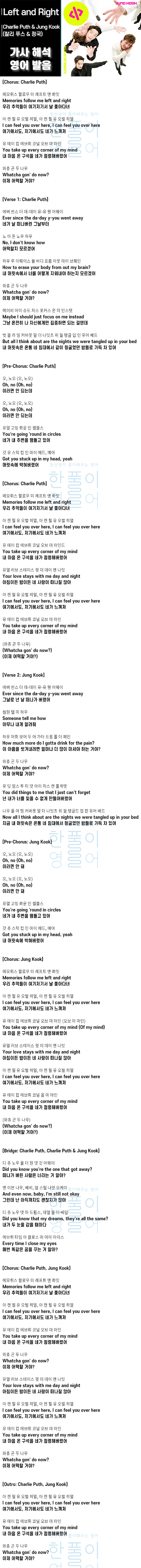 Left and Right - Charlie Puth & Jung Kook(찰리푸스&정국 BTS) [가사 해석, 번역 / 영어 한글 발음]