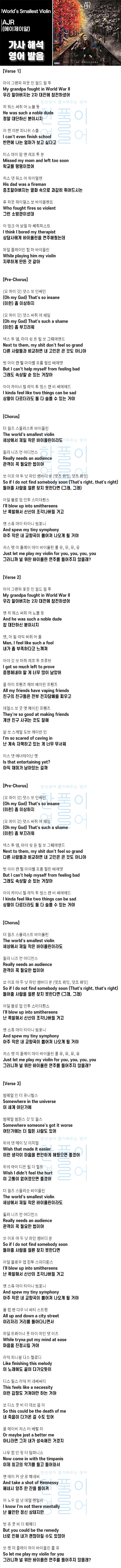 World’s Smallest Violin - AJR (에이제이알) [가사 해석, 번역 / 영어 한글 발음]