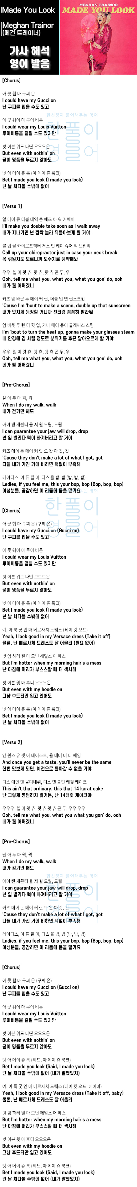 Made You Look - Meghan Trainor (메건 트레이너) [가사 해석, 번역 / 영어 한글 발음]