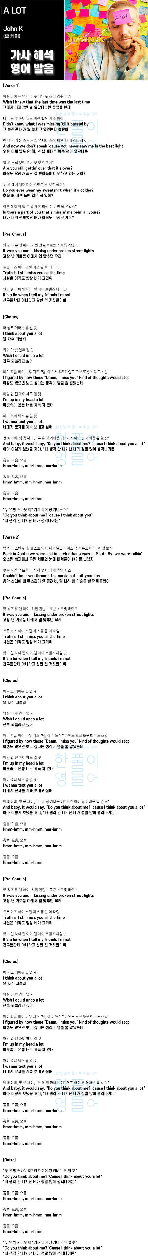 A LOT - John K(존 케이) [가사 해석, 번역 / 영어 한글 발음]
