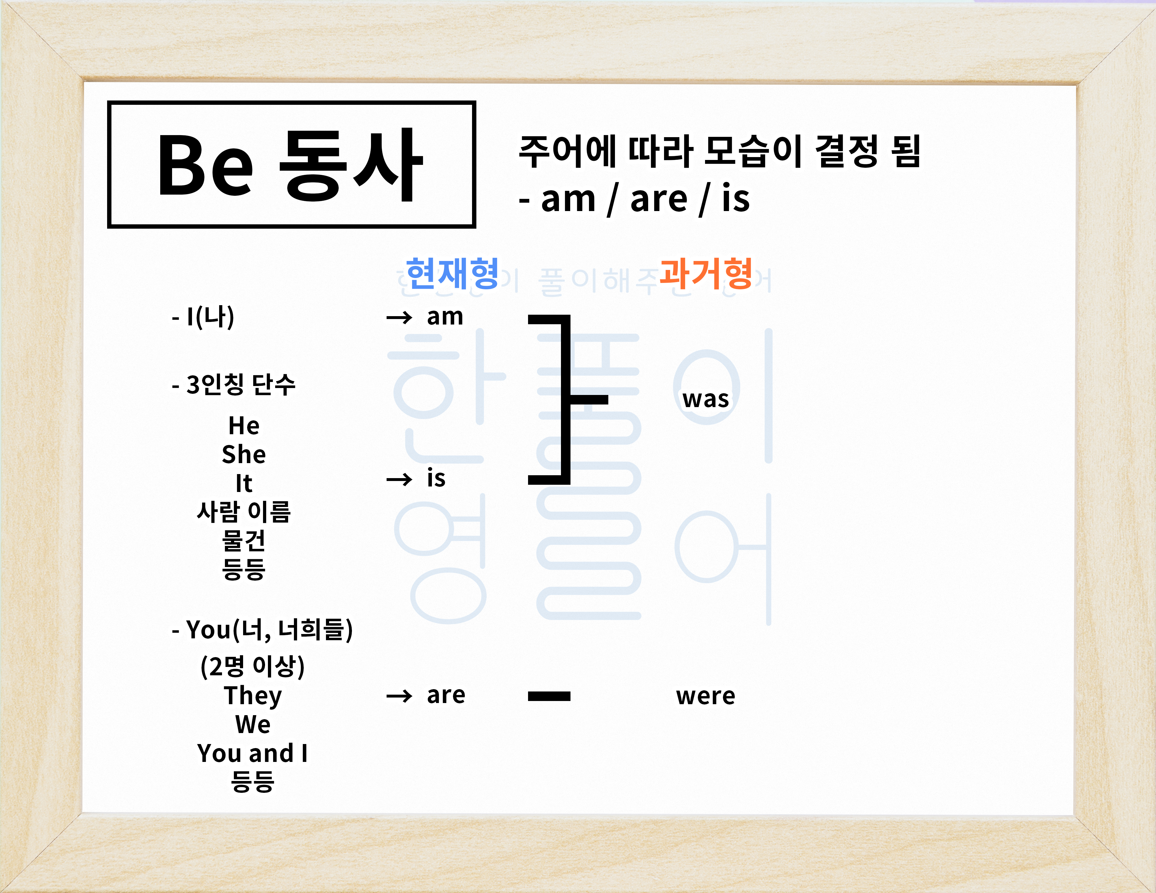 be 동사의 종류는 am/are/is가 있어요.