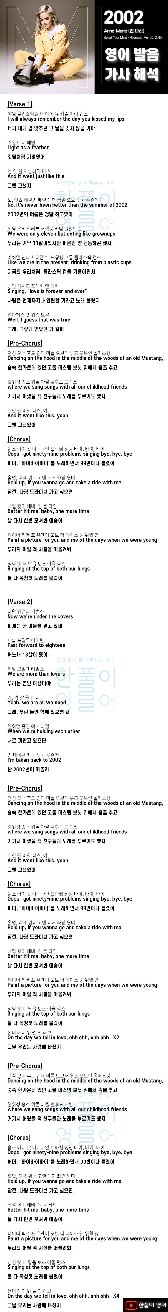 Anne Marie(앤 마리) - 2002 [가사 해석, 번역 / 영어 한글 발음]