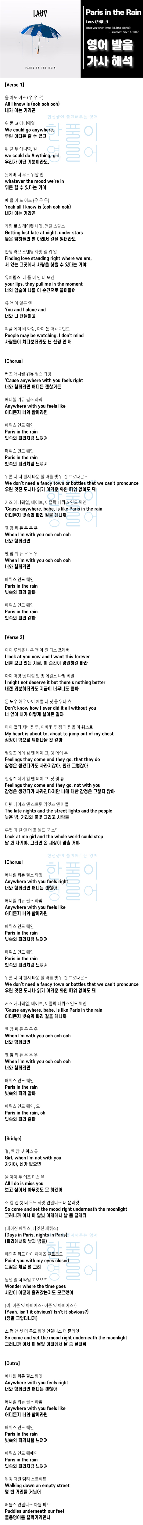 Paris in the Rain - Lauv (라우브) [가사 해석, 번역, 영어 한글 발음]