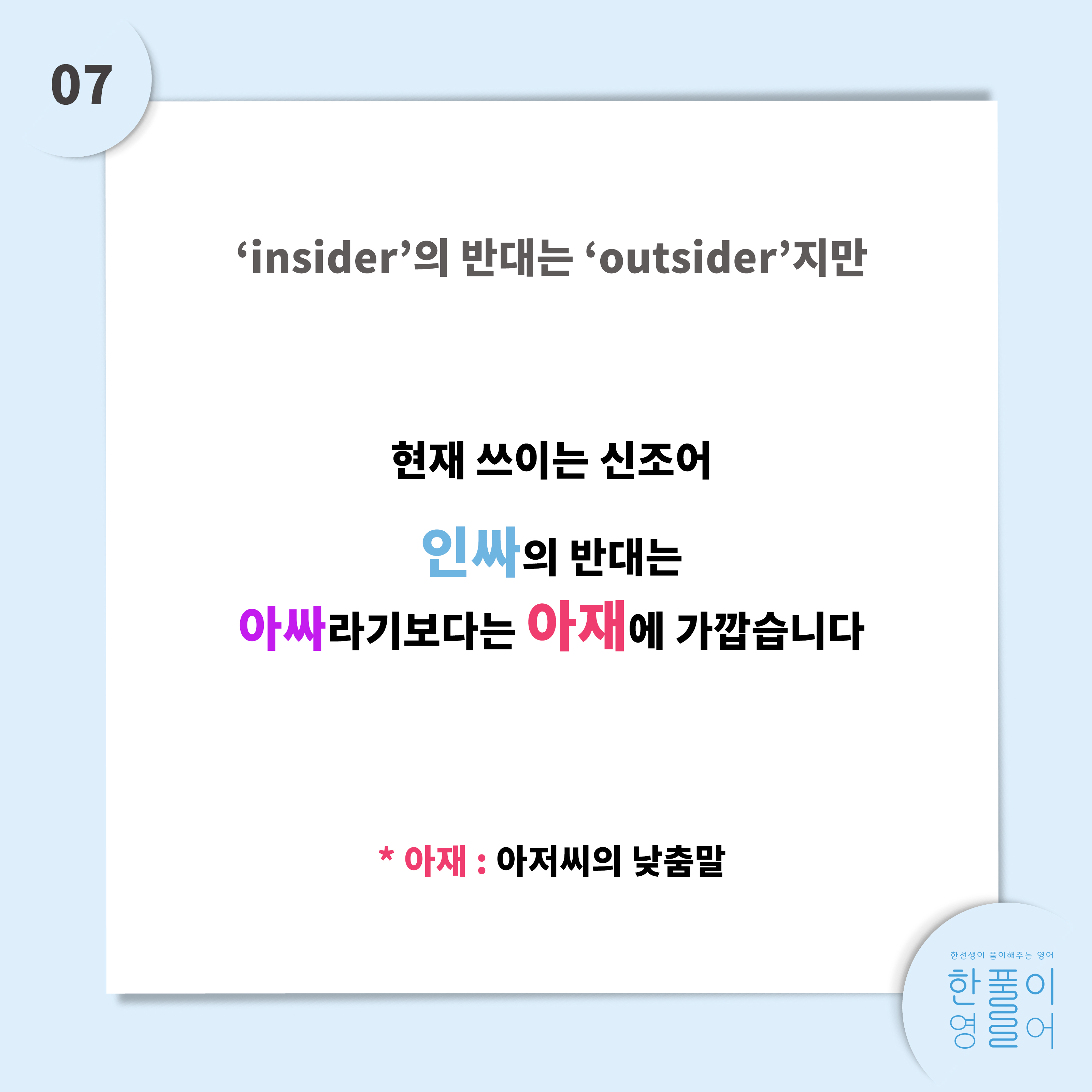 인싸의 반대 단어는 아싸가 아닙니다.