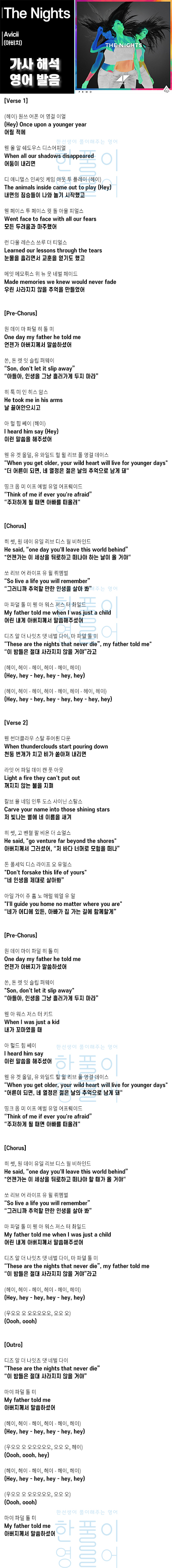 The Nights - Avicii (아비치) [가사 해석, 번역 / 영어 한글 발음]